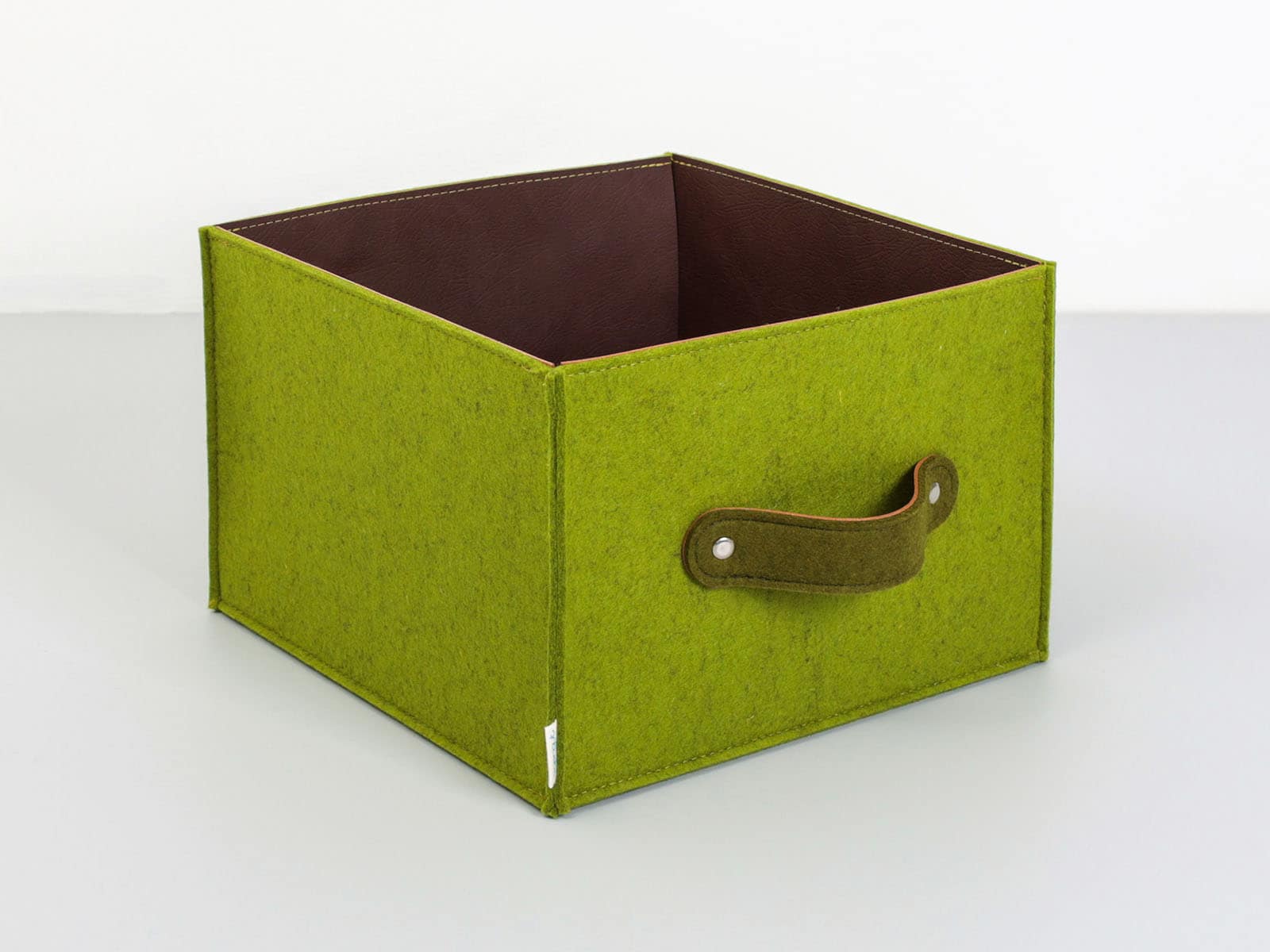 Aufbewahrungskorb aus Filz und recyceltem Leder nach Maß mit Griff