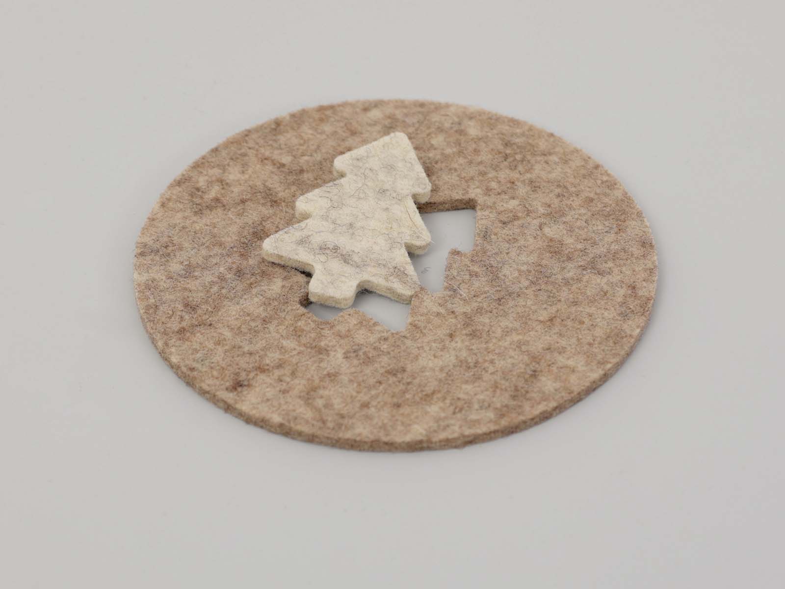 Filzuntersetzer run mit Weihnachtsbaum – schlicht, schön, praktisch. Für Gläser, Tassen, kleine Vasen oder andere Lieblingsstücke: Unser 3 mm starker Wollfilz mit ca. 900 g Wolle / qm schützt zuverlässig vor Kratzern und nervigem Geklapper. Die Dicke von 3 mm ist ideal für Untersetzer: stabil, aber nicht zu hoch – so steht auch das Glas sicher, ohne groß zu wackeln (bei 5 mm kann’s schon mal kippeliger werden).